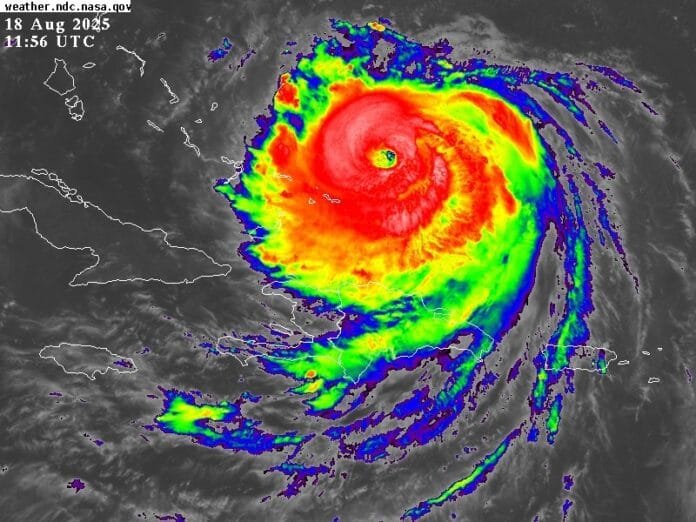 El huracán ERIN es categoría 4 en la escala de Saffir-Simpson, ahora posee vientos máximos sostenidos estimados en 215 km/h. Se localiza aproximadamente a 170 kilómetros al nor/noreste de Gran Turk Island y se desplaza hacia el noroeste a una velocidad de 20 km/h.