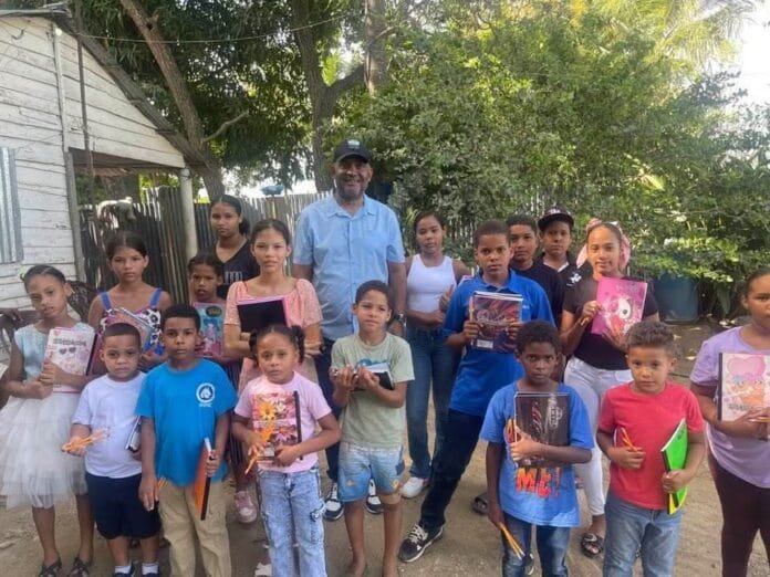 Esperanza, Valverde, R.D.– El Diputado José Valenzuela realizó una jornada de entrega de útiles escolares en beneficio de decenas de niños y niñas del sector Los Callejones, en el municipio de Esperanza.