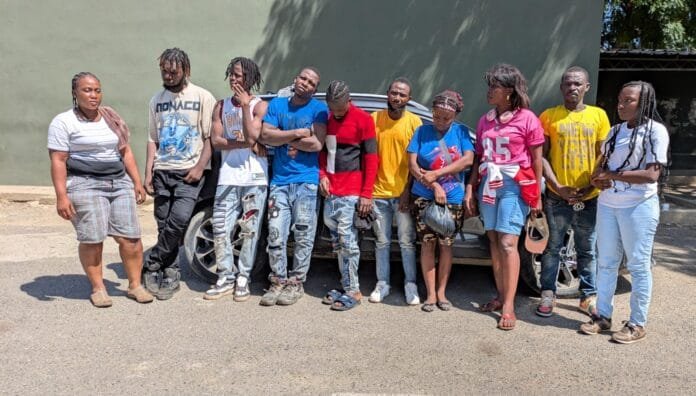 En el vehículo fueron localizados seis hombres, cuatro mujeres y un menor de edad. Al conductor también se le ocuparon siete teléfonos celulares de diferentes marcas.
