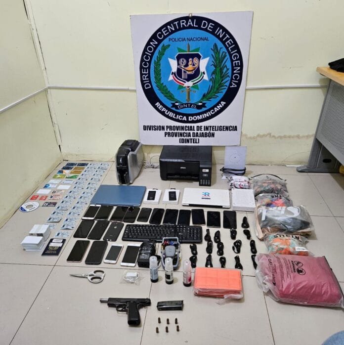 La intervención se llevó acabo, bajo la dirección del Subdirector Regional Noroeste de Inteligencia, P.N. Durante el operativo fue arrestado Leury Jean Carlos Vega Polanco, a quien se le ocuparon equipos tecnológicos y materiales destinados a la falsificación de documentos,