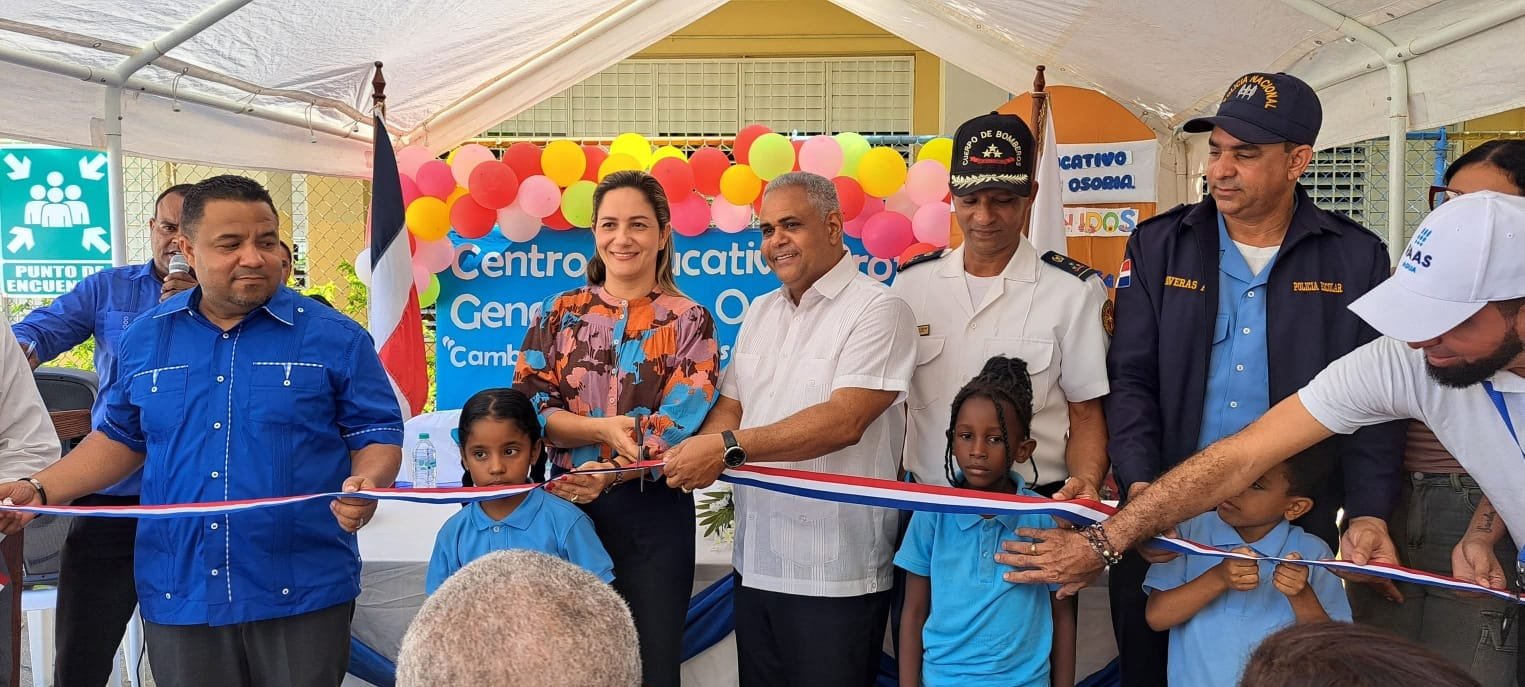 Esperanza, Valverde.– Bajo la dirección de la Regional 09 de Educación, que encabeza la Lic Raquel Báez M,A, y el liderazgo del director distrital Lic. Eduar Espinal, el Distrito Educativo 09-02 entregó este martes los trabajos de remozamiento del Centro Educativo Prof. Genaro A. Osoria Osoria, en un acto que reunió a autoridades civiles, militares, educativas y comunitarias.