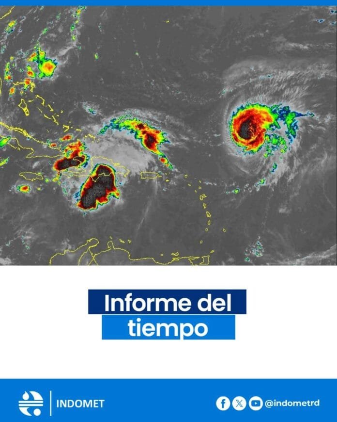 Por consiguiente, seguirán ocurriendo aumentos nubosos, aguaceros dispersos de moderados a fuertes, tronadas y ráfagas de viento en sectores de La Romana, San Pedro de Macorís, Monte Plata, el Gran Santo Domingo, Peravia, San Cristóbal, Azua, San Jose Ocoa, San Juan, Barahona y Pedernales. Durante la tarde, las lluvias se extenderán a Hato Mayor, El Seibo, Monte Plata, Samaná y María Trinidad Sánchez, y persistirán durante las primeras horas de la noche, para luego ir gradualmente desapareciendo la actividad mencionada.