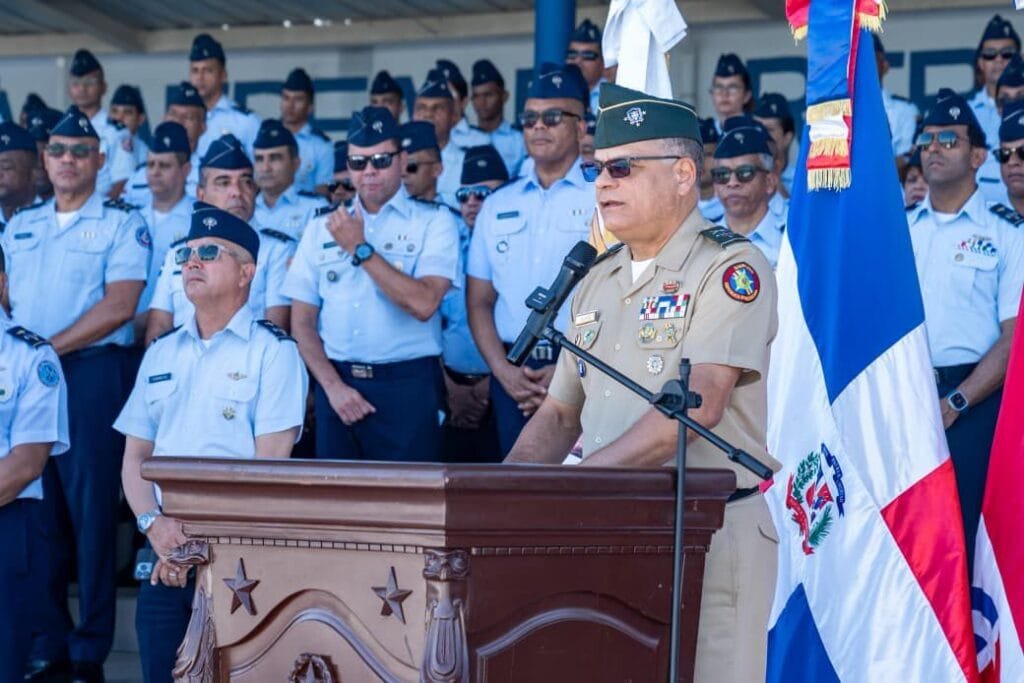 A su llegada a la Base Aérea de San Isidro, el alto mando militar fue recibido con los honores correspondientes a su investidura. Posteriormente, dirigió un mensaje a las tropas en el que resaltó la entrega, disciplina y compromiso de los hombres y mujeres del aire, subrayando la trascendencia de su labor en la defensa y seguridad del espacio aéreo nacional. En ese mismo escenario, anunció el inicio de obras de remozamiento orientadas a mejorar las condiciones de trabajo del personal que presta servicio en la base aérea.