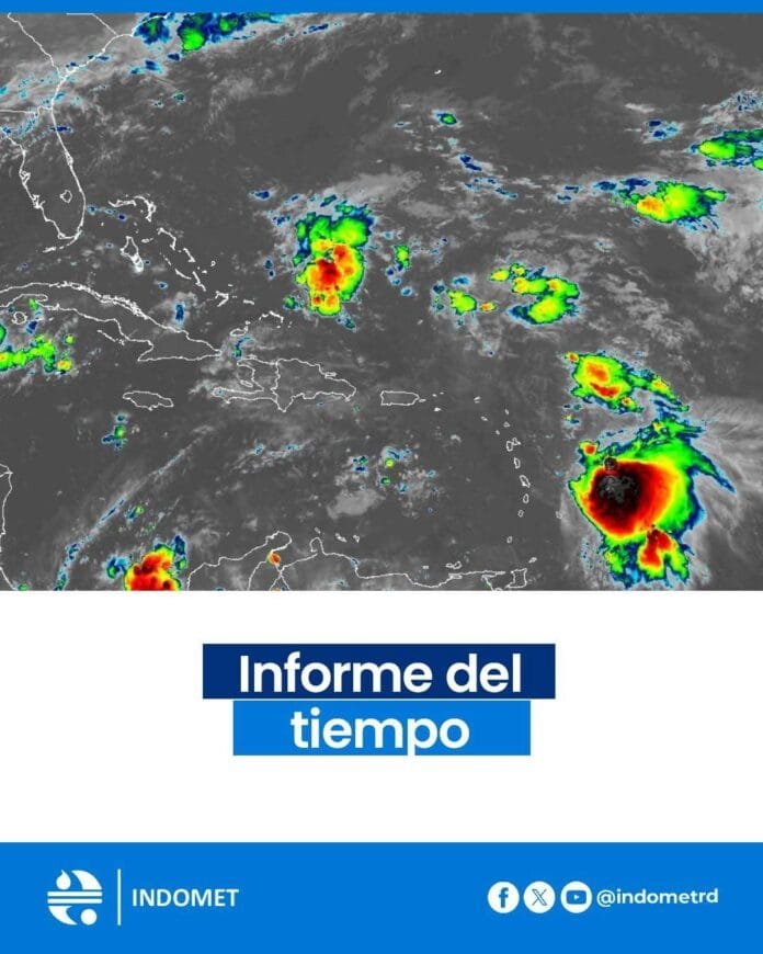 A partir del mediodía, ambos fenómenos se combinarán con el ciclo diurno incrementando la nubosidad, con la ocurrencia de aguaceros moderados, tormentas eléctricas y ráfagas de viento en sectores de La Altagracia, El Seibo, Hato Mayor, Monte Plata, Duarte, Monseñor Nouel, San José de Ocoa, Azua, La Vega, Santiago, Espaillat, Santiago Rodríguez, Dajabón, San Juan, Elías Piña, Independencia, Barahona y Pedernales, así como en zonas cercanas.