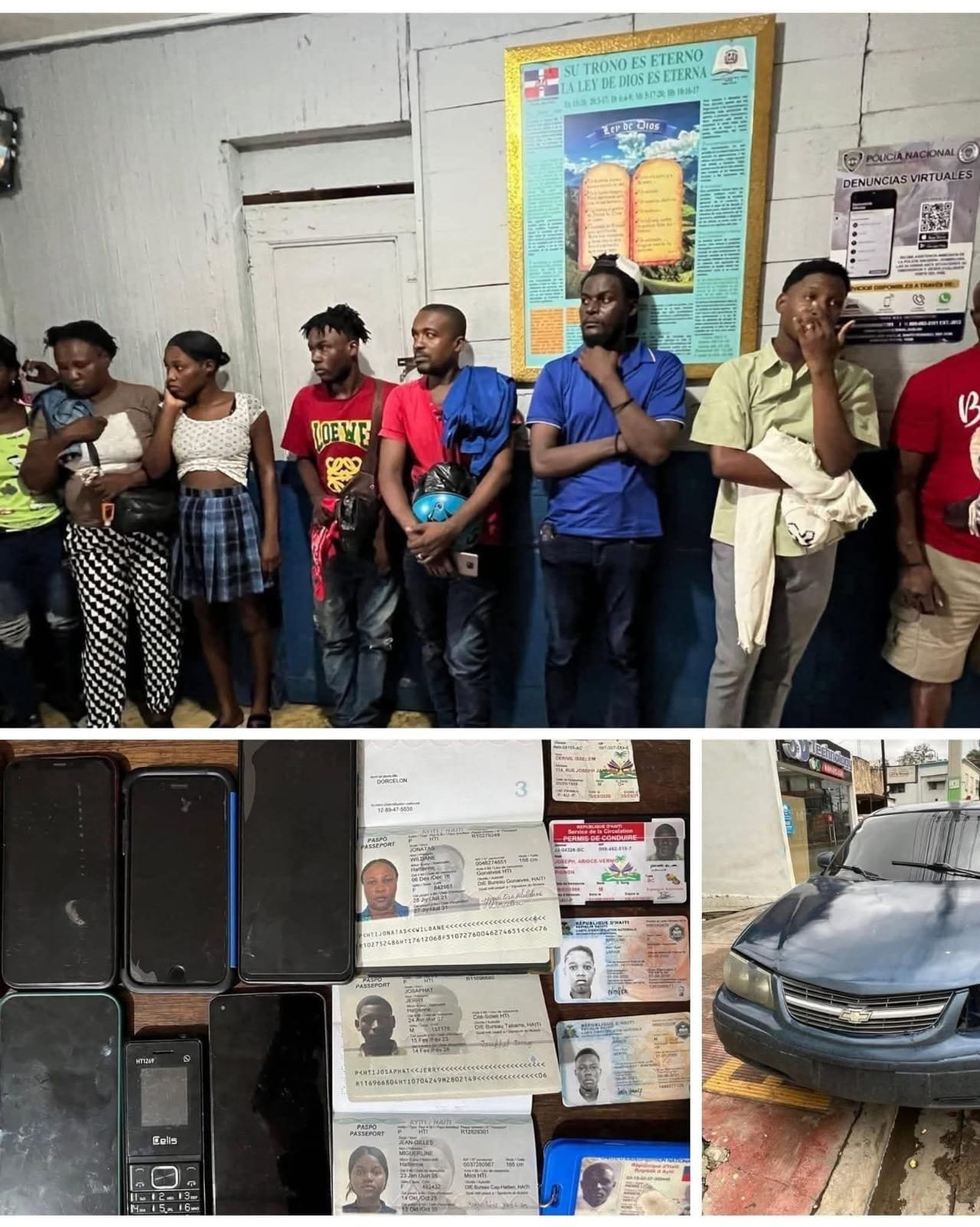 Santiago de los Caballeros, R.D.— La Policía Nacional informó que, durante un operativo preventivo realizado la tarde del pasado sábado 2 de noviembre de 2025, por los efectivos adscritos al municipio de Navarrete, fue apresado en flagrante delito el ciudadano Joséph Arioce-Vernio de nacionalidad haitiana e indocumentado, quien conducía un vehículo marca Chevrolet Impala, color azul, placa A472799, transportando siete nacionales haitianos ilegales.