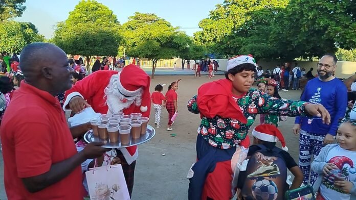 Durante la celebración, los alumnos participaron en un desfile interno vistiendo pijamas navideñas y acompañados por un rico «gaviao navideño», y el personaje de Santa Claus, lo que añadió un toque especial al ambiente festivo.