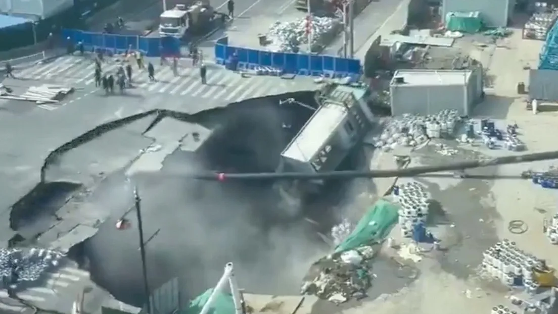 Socavón se traga una calle y varias edificaciones en Shanghái