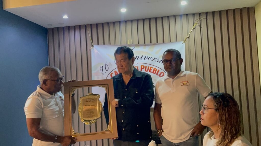 Durante la conmemoración, el equipo de «Calor del Pueblo» otorgó un reconocimiento especial al empresario Takeshi Mukai, a quien catalogaron como uno de los «padrinos» más constantes del espacio, Tanto Juan de Dios Liberato como Pedro Martínez hicieron énfasis en el impacto positivo del trabajo social que Mukai desarrolla a través de sus empresas, operando bajo el marco de la Ley 12-21 (anteriormente 28-01) de Desarrollo Fronterizo.