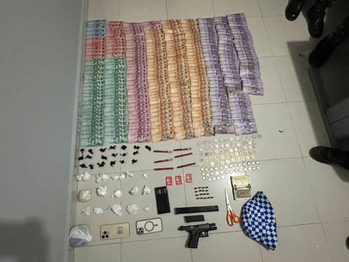 Durante la intervención, los agentes también ocuparon 19 porciones de un vegetal presumiblemente marihuana, con un peso aproximado de 18.7 gramos; cinco porciones de un polvo blanco presumiblemente cocaína, con un peso aproximado de 76.9 gramos; 10 porciones de un material rocoso presumiblemente crack, con un peso aproximado de 300 gramos, además de una suma de dinero en efectivo ascendente a $70,825 pesos en diferentes denominaciones.